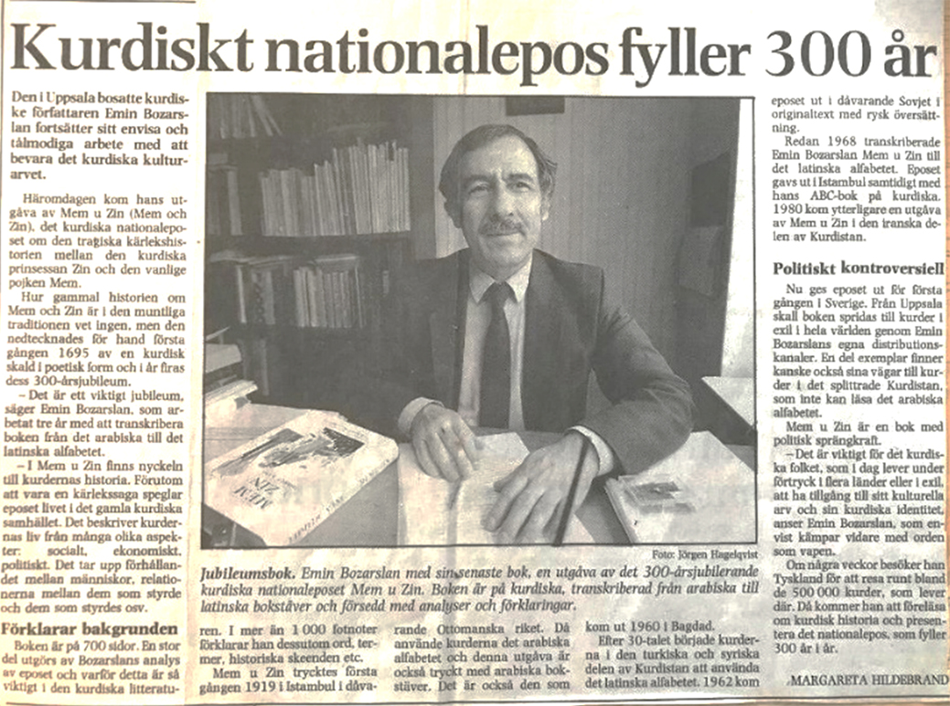 Li ser salvegera 300 saliya nivîsîna destana kurdî Mem û Zînê (Uppsala Nya Tidning, 27-2-1995)
