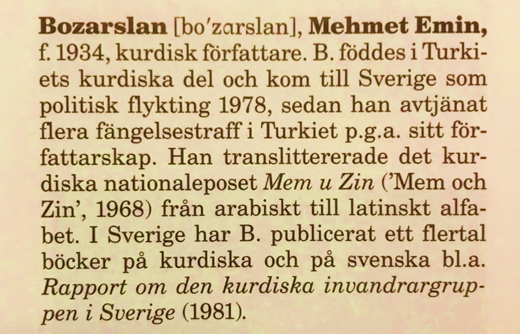Bozarslan di Ansîklopedîya Neteweyî ya Swêdê de (cild 3, 1990)